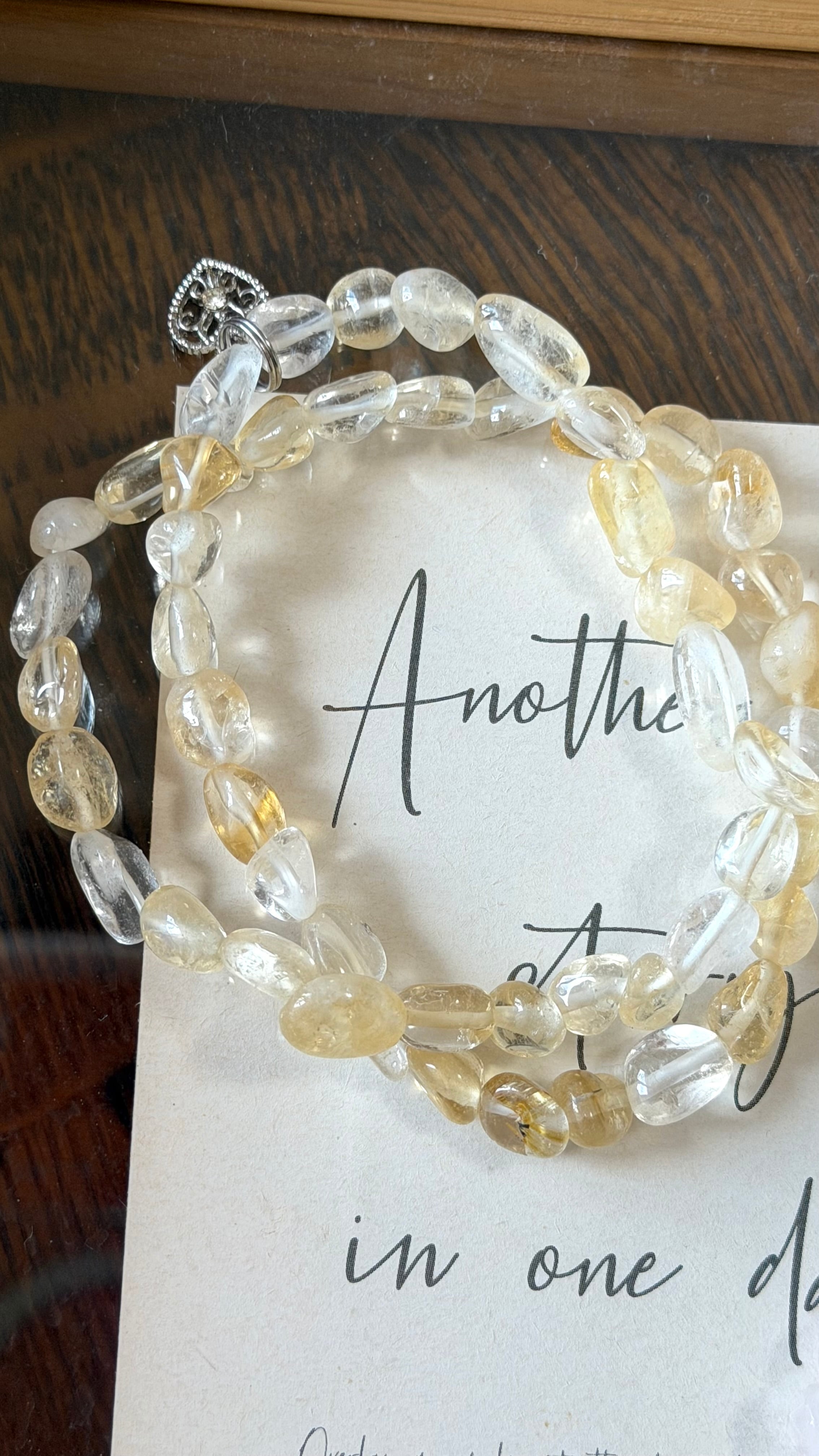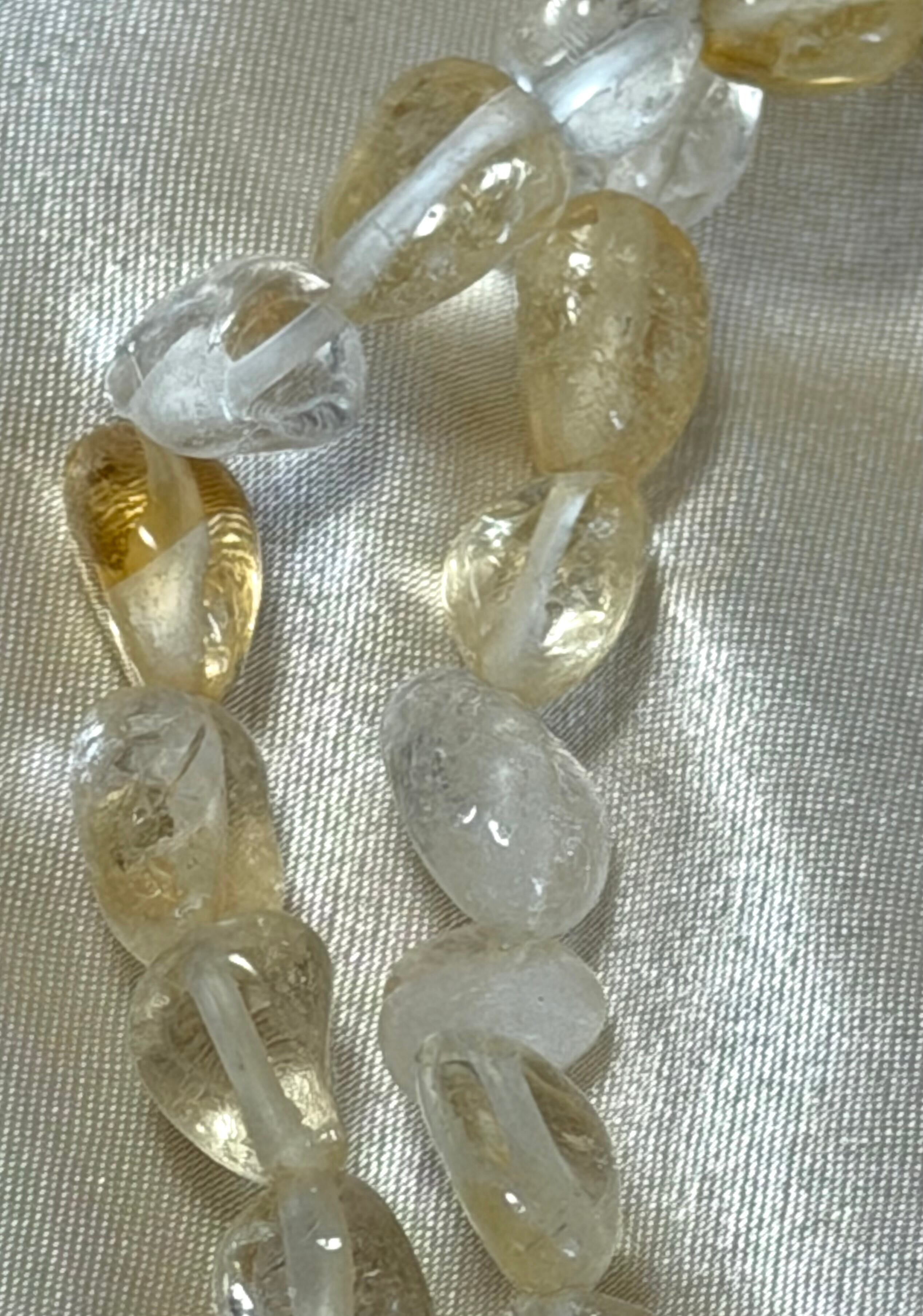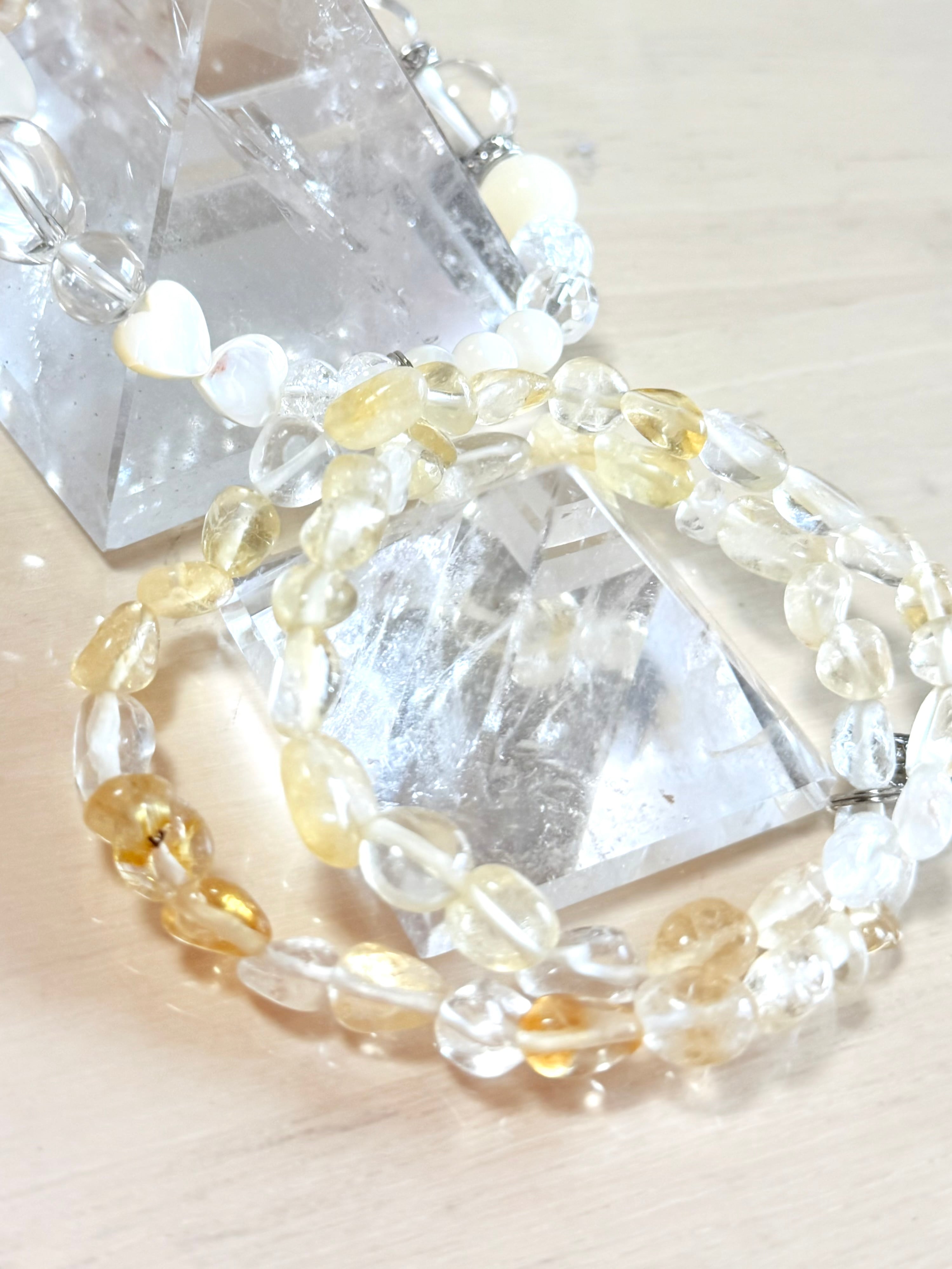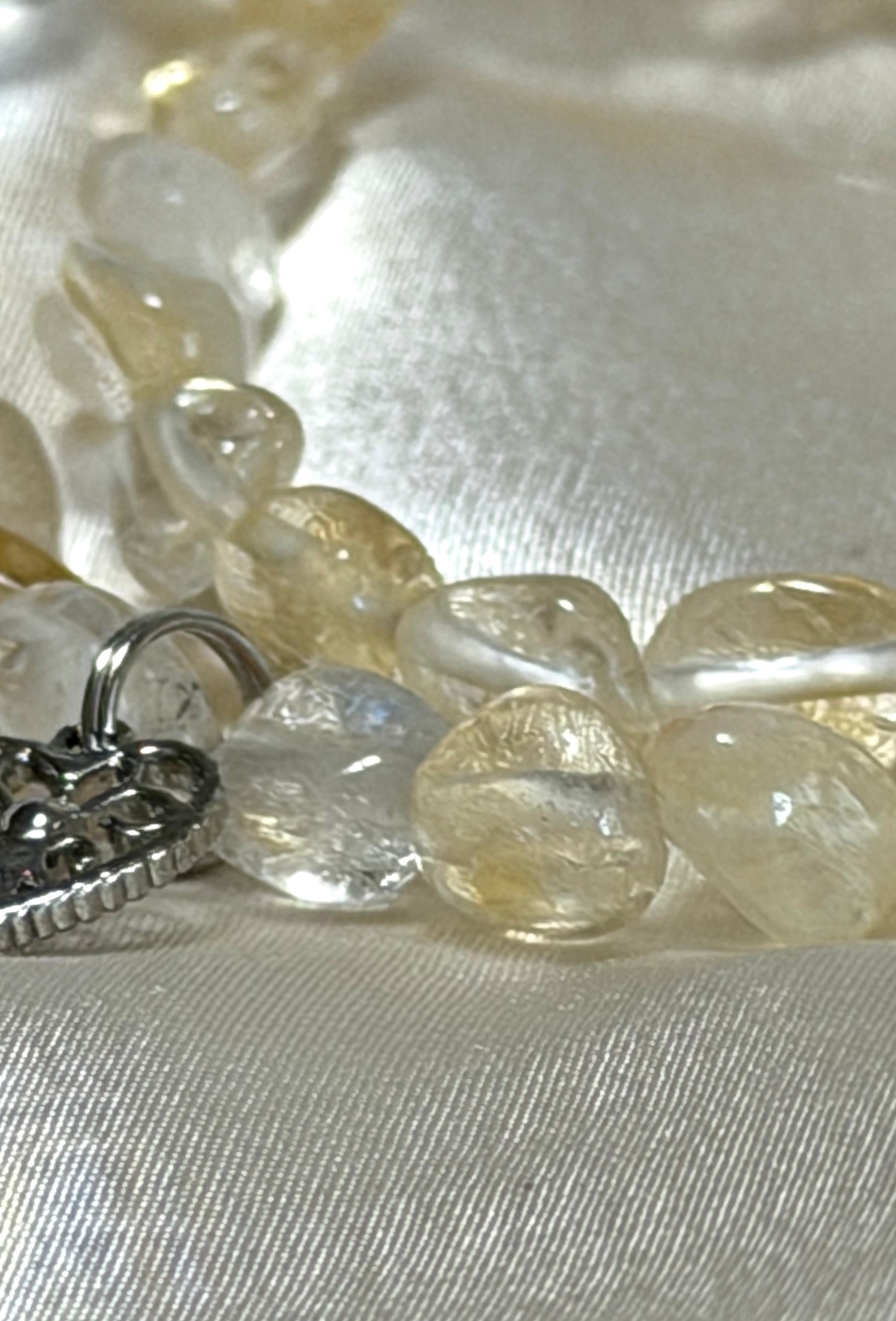 淡いレモンイエローとクリアホワイトの天然シトリンは、心の傷に寄り添う優しさナンバーワンの天然石。